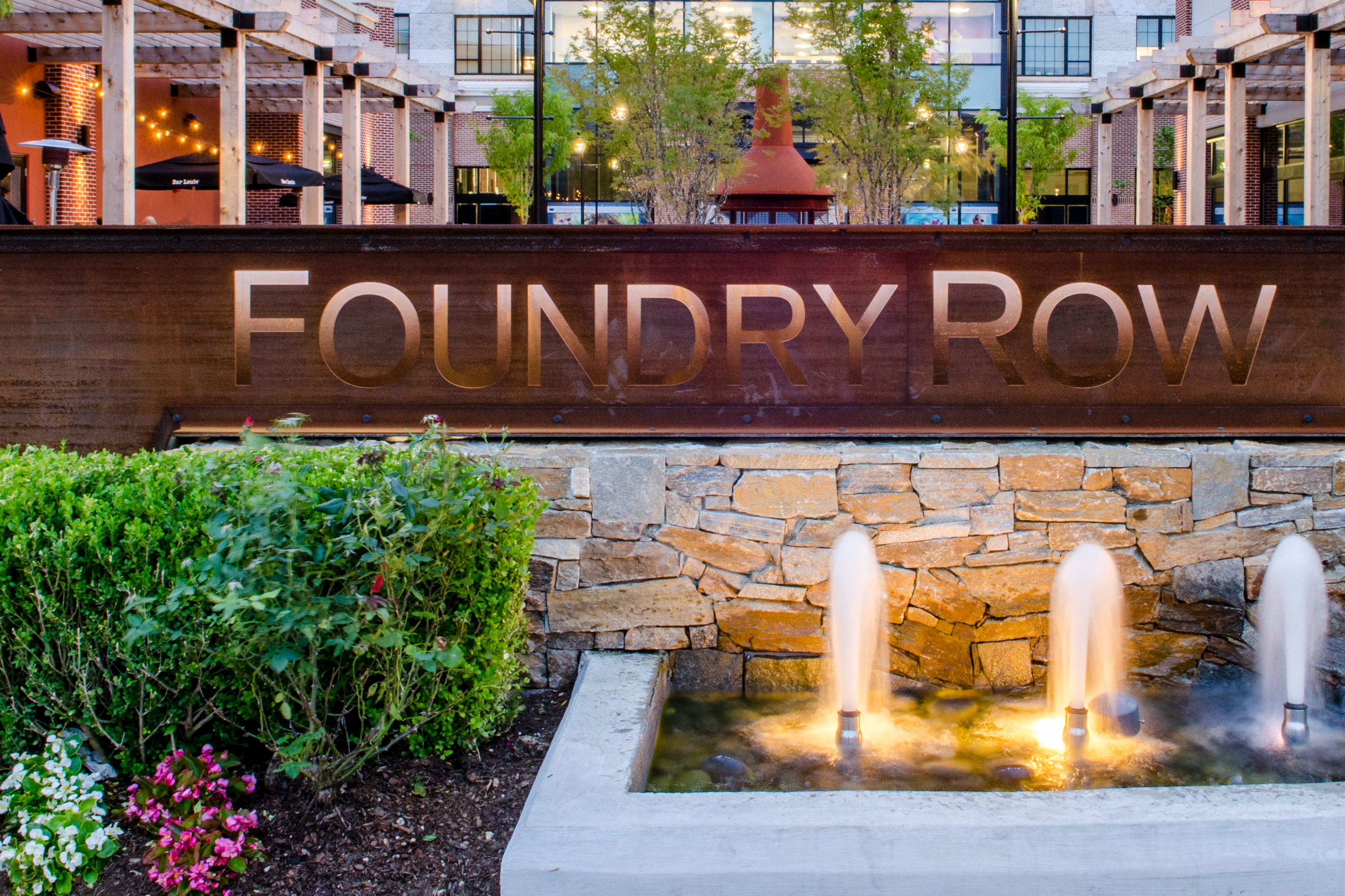 PLUSEN created a lively town center for the new commercial development which is Foundry Row, an upscale, open-air center including 356,000 sq. ft. of retail and 40,000 sq. ft. of office space. Working with artists and store owners, we strove to create space that can be enjoyed in both active and passive recreation. The central hub creates a perfect gathering space, allowing for events such as farmers markets, live music, or simply a waiting for a table at one of the numerous nearby restaurants.